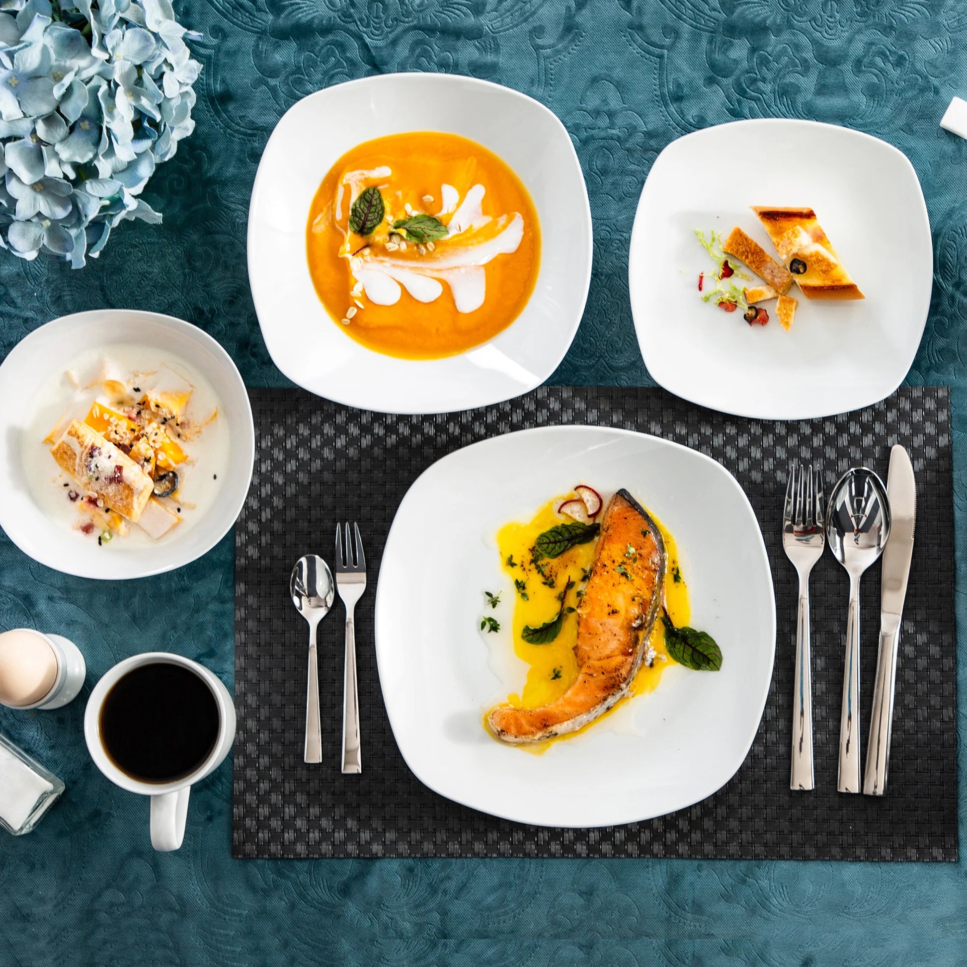 Upgrade your dining experience with the MALACASA ELISA 50-Piece Porcelain Dinnerware Set, designed to offer both elegance and functionality for everyday use or special occasions. Made from high-quality stoneware ceramic, this eco-friendly set is non-toxic, lead-free, and cadmium-free, ensuring safe and healthy use for you and your family.